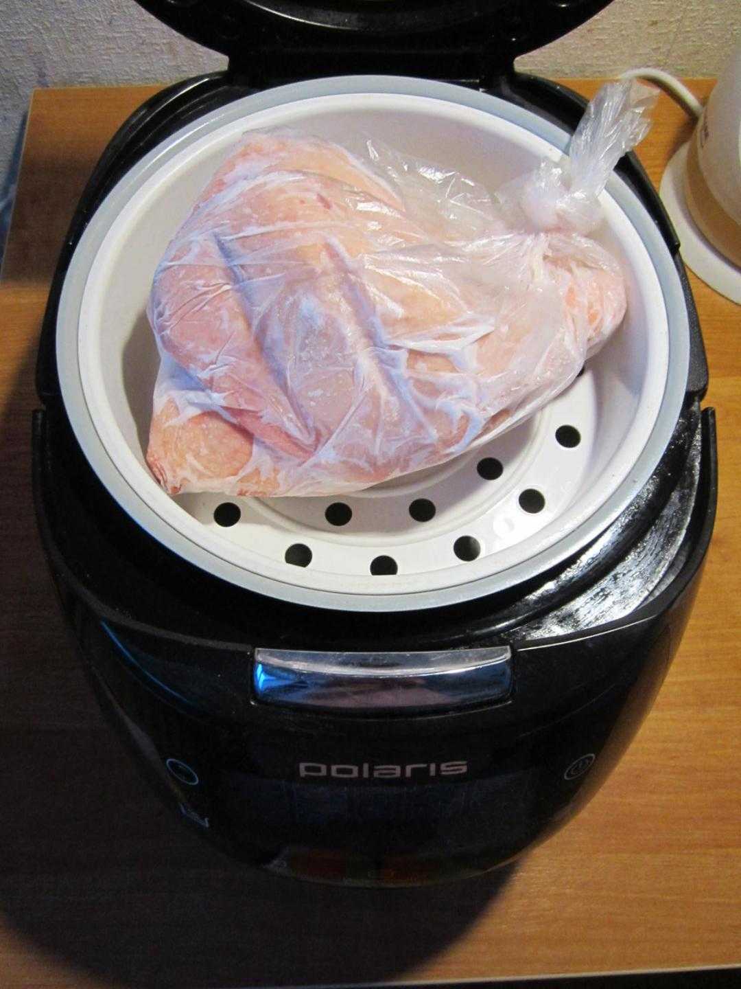 Очень удобно размораживать куриное филе с помощью пара. Быстрее и проще делать это в мультиварке. Мясо сохраняет больше полезных веществ, чем при предыдущем методе.