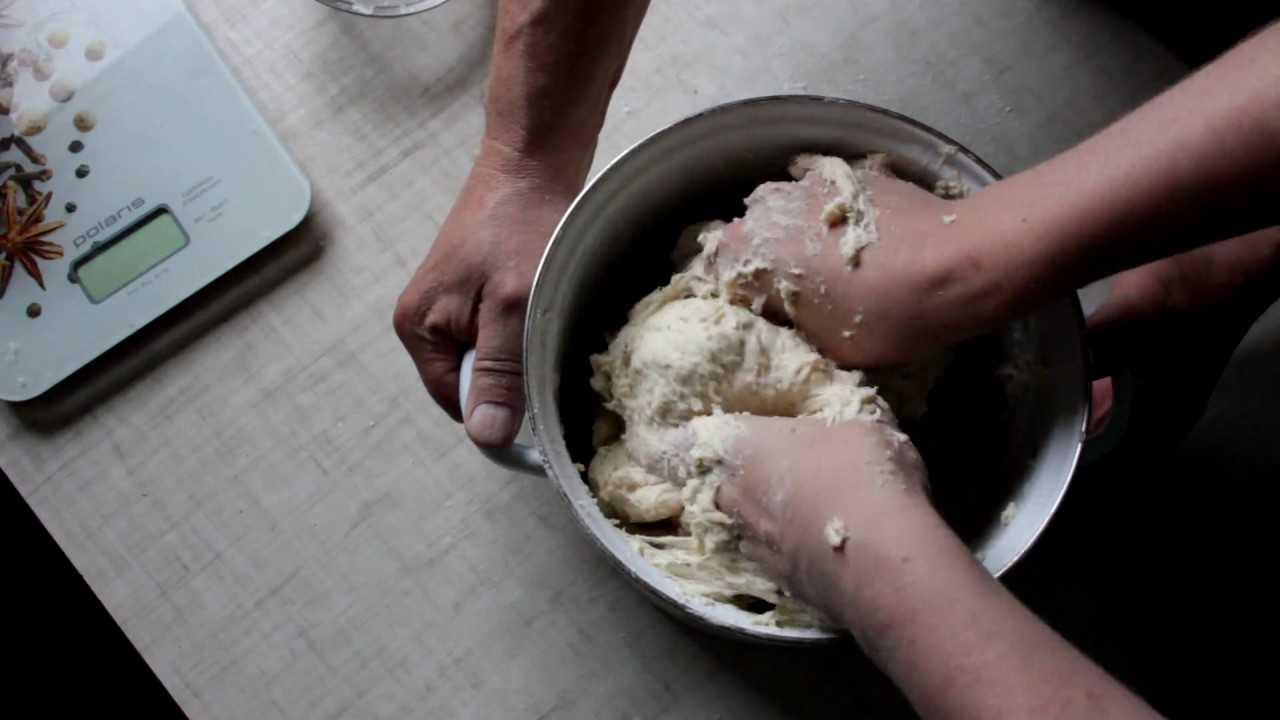 Чтобы выпечка получилась вкусной и воздушной, тесто нужно как следует вымесить — на это уходит примерно 10 минут. Оно должно стать эластичным, податливым, а образовавшиеся пузырьки воздуха будут лопаться и пищать во время вымешивания.