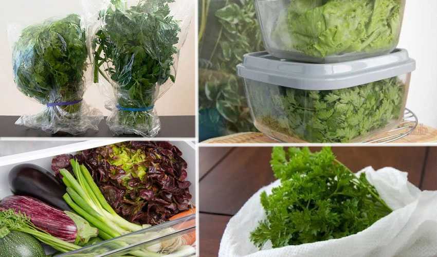 Оптимальное место для хранения зелени – отделение для овощей в холодильнике