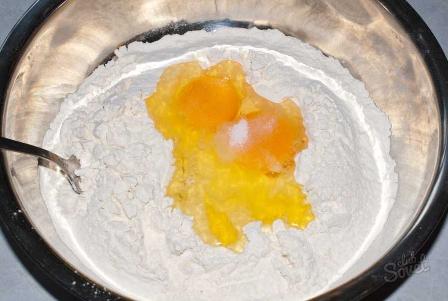 Разболтать яйцо с водой в миске, добавить к ним щепотку соли и лимонный сок. Добавить еще пол стакана воды. Хорошо размешать и добавить в смесь просеянную муку. Замесить тесто до однородности.