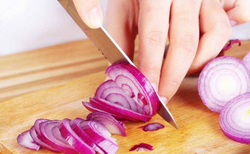 Внимание!Намного меньше слез прольется, если использовать хорошо заточенный нож. При тонкой ровной нарезке уменьшается выделение раздражителя, да и весь процесс проходит быстрее