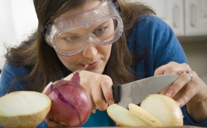 - Немного смешной способ — дуть на лук и на нож, отгоняя раздражающие пары.