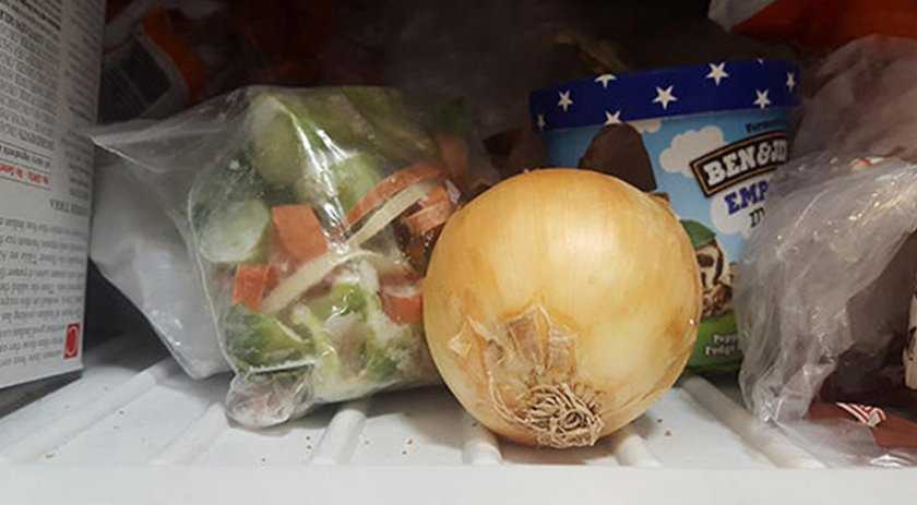 - Уменьшить воздействия раздражителя поможет переохлаждение. Луковицу очищают от шелухи и на 15-20 минут укладывают на полку холодильника поближе к морозилке.