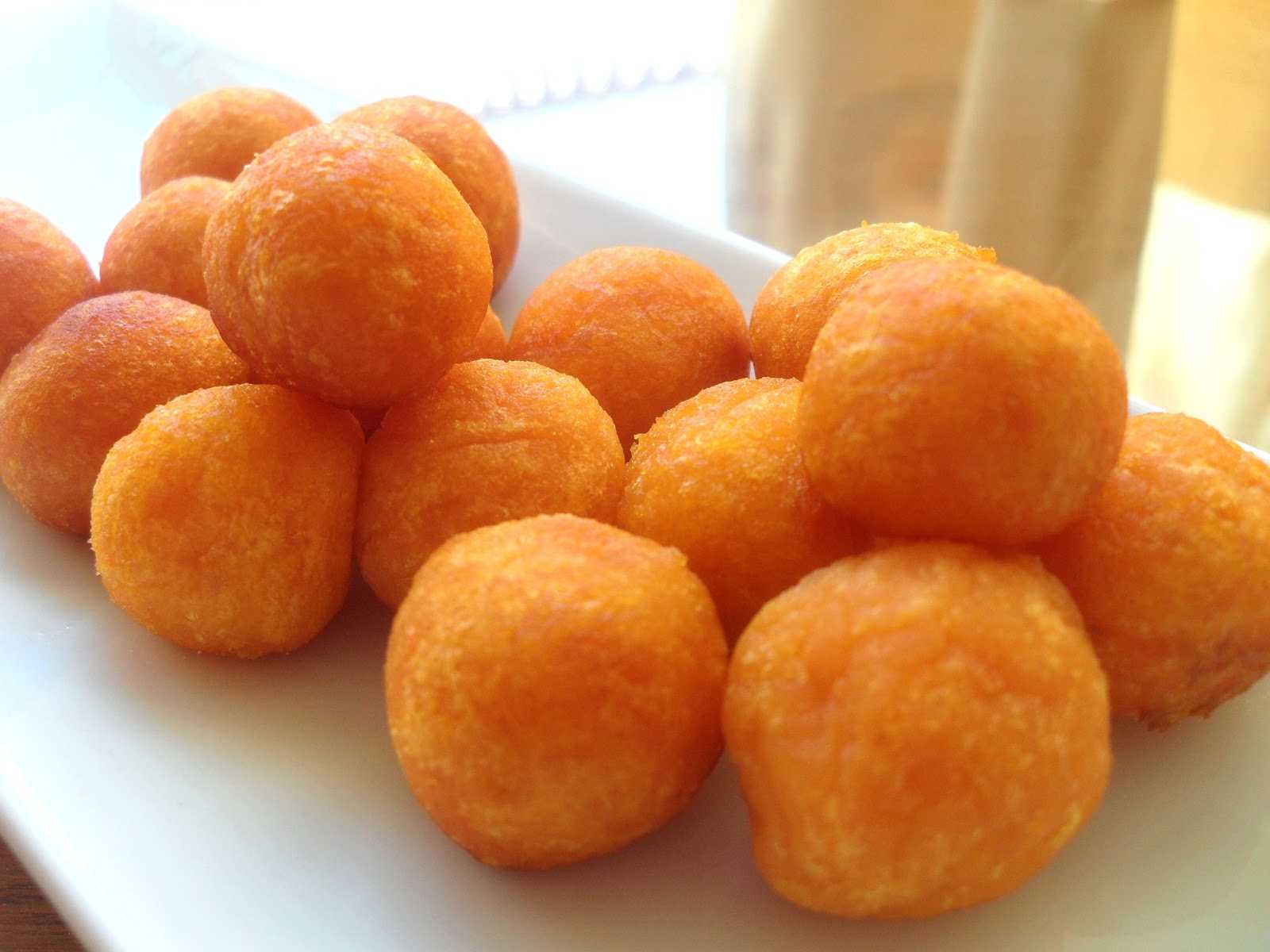 По желанию шарики делаются в панировке, для которой используются семена кунжута, панировочные сухари, сырная крошка. Чтобы получилось сытное блюдо с ароматной начинкой, внутрь можно положить мясо, фарш, ветчину с сыром или овощи. После формирования колобков их жарят во фритюре или глубоком казанке на раскаленном подсолнечном масле, но вполне можно использовать классическую сковородку, противень в духовке или мультиварку.