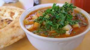 2. Ваджа. Нарезаем мясо и обжариваем его крупными кусками на курдючном сале вместе с косточками. Лук режем тонкими колечками и полукольцами, добавляем к мясу и обжариваем до глубокого цвета. Морковь нарезаем в виде стружки, капусту и болгарский перец полосками. К мелко порубленным помидорам добавить щепотку сахара, все сложить на мясо и продолжить жарить. Дождавшись, когда помидоры дадут сок добавить специи (зиру, перец и соль). Когда сок выпарится наполовину (не пропустите!), положите капусту морковь и сладкий перец. Перемешайте и влейте бульон или воду от лапши, таким образом, чтобы черпак погружался в жидкость с небольшим усилием. Положите горький перец и отрегулируйте очень слабое кипение. Варим 40 минут. За 15 минут до окончания варки кладем звездочку бадьяна, выключаем огонь и настаиваем 15 минут. Кусочки мяса разделяем и кладем в тарелку, заливаем ваджой.