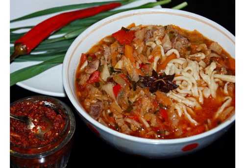 Родиной лагмана считается Китай. Оттуда он пришел в Афганистан, Монголию, Узкекистан, потому традиционно специй в лагмане достаточно много. Фиолетовый базилик, молотый корень имбиря, измельченный бадьян, куркума, кинза, зира, черный и красный перец, кориандр – все эти приправы подходят для добавления в лагман.