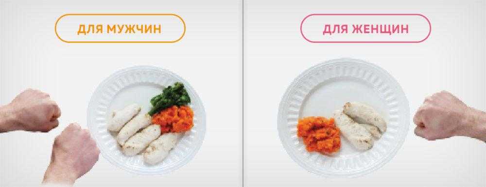 Наш основной измерительный инструмент — это ладонь. С помощью неё мы измеряем все продукты. Существуют разные метрики для мужчин и женщин. У женщин количество пищи в два раза меньше. Рассмотрим на примерах: