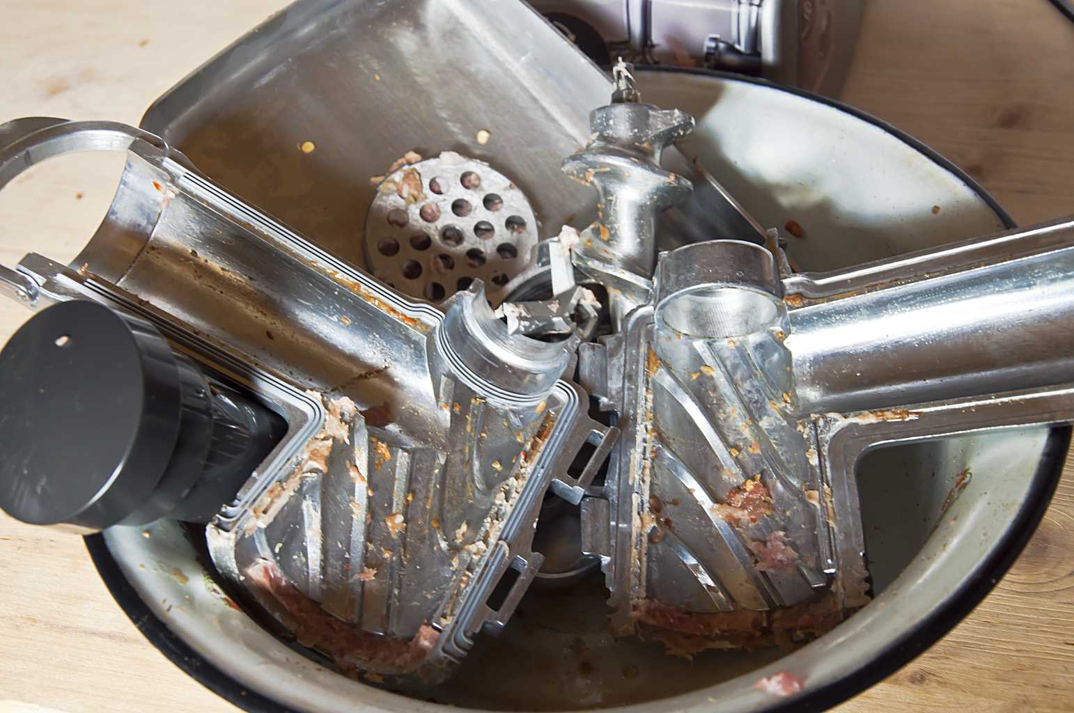 Можно мыть собранную мясорубку? Нельзя, потому что вы не полностью вычистите остатки фарша. Он начнет портиться, машинку все равно придется разбирать и опять мыть.