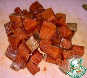 Важно кусок красной рыбы тщательно очистить от чешуи и от всех костей. Нужно только филе