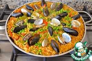 Далее приводится рецепт паэльи с морепродуктами и мясом – Paella al estilo mar y tierra (паэлья в стиле «Море и земля»