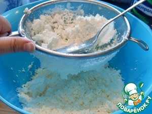 Творог протираем через сито. Он не должен быть сырым.