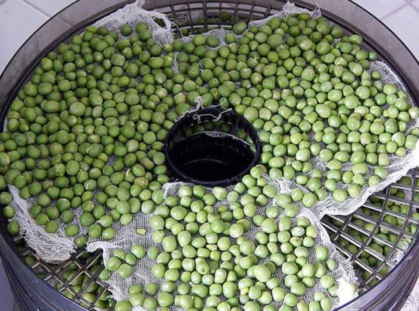 - Стручки лущатся, а полученные зёрна калибруются — горошины разного размера сушатся по отдельности.