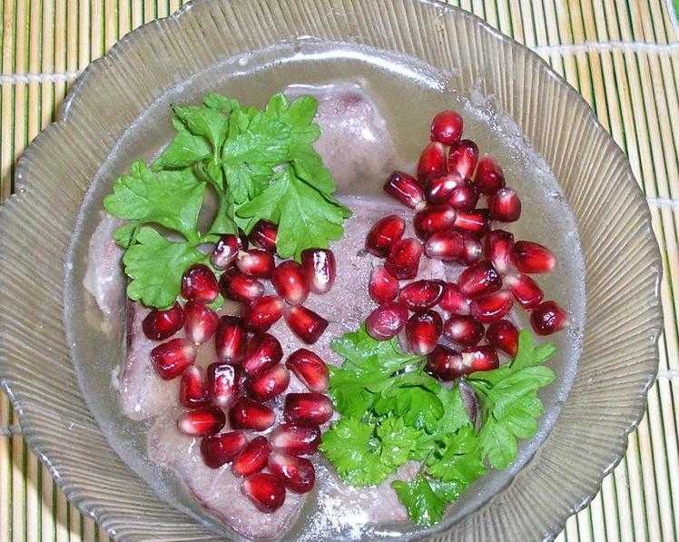 Я однажды видела,что зернышками граната украсили уже готовый холодец: