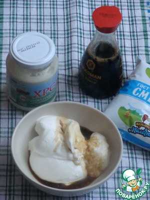 В сметану добавить соевый соус и хрен (готовый). Хрен и соус добавляйте постепенно — пробуйте по вкусу.