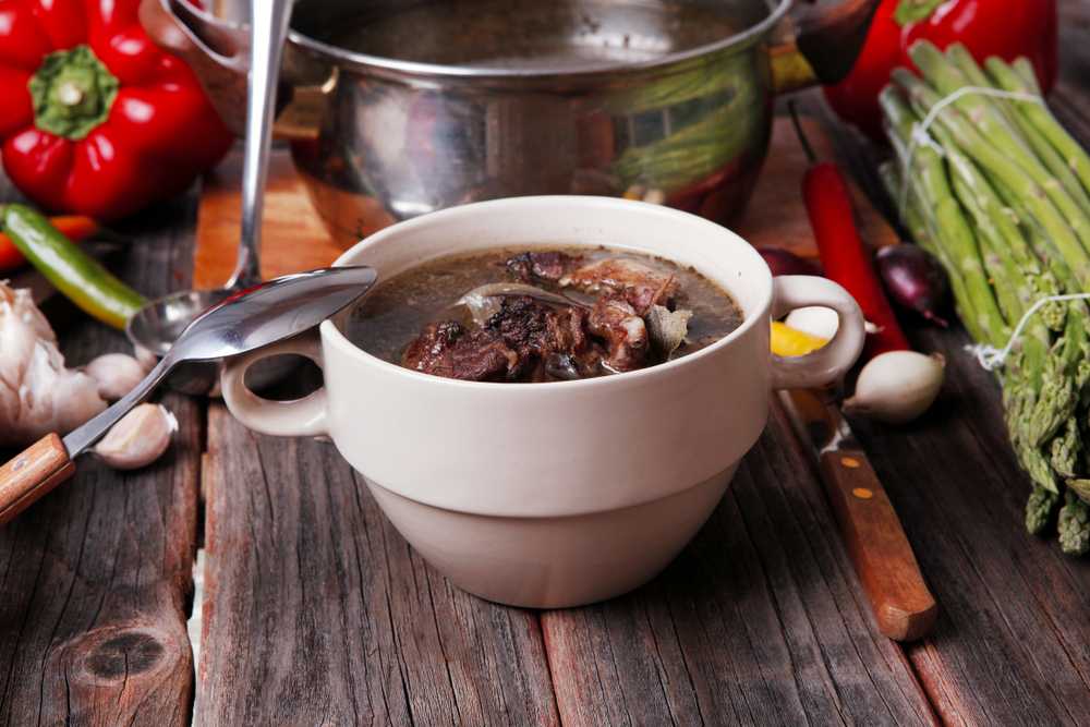 - Мясо. Если вы используете то же мясо, на котором варили бульон, его нужно вынуть из воды, порезать или разорвать на волокна и отправить обратно сразу же после процеживания. Довести до кипения.