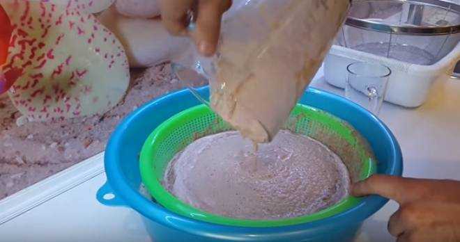 Измельчить высушенный солод на мясорубке. Охладить проваренный крахмал до 60°C, добавить солод и перемешать. Поддерживать температуру 60°C (допустимое колебание – 2-3 градуса) в течение следующих 45 минут. Это можно сделать медленным нагреванием, укутав кастрюлю теплыми вещами или перенеся в ванну с горячей водой.