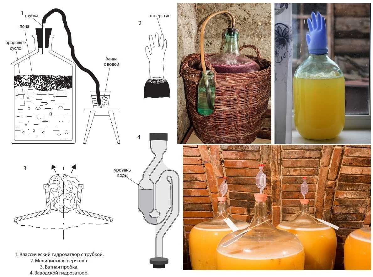 Емкость с брагой перенести в темное место с температурой 16-25°C и установить гидрозатвор. Спустя 3-8 дней бурление в водяном затворе прекратится, брага станет горькой на вкус, посветлеет, а на дне появится осадок. Это значит, что пришло время перегонки.