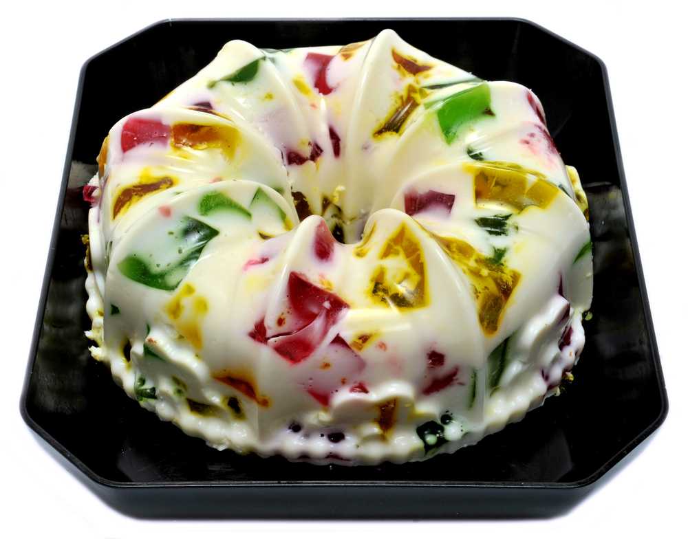 Желе с бисквитом, творогом и фруктово-ягодным соком