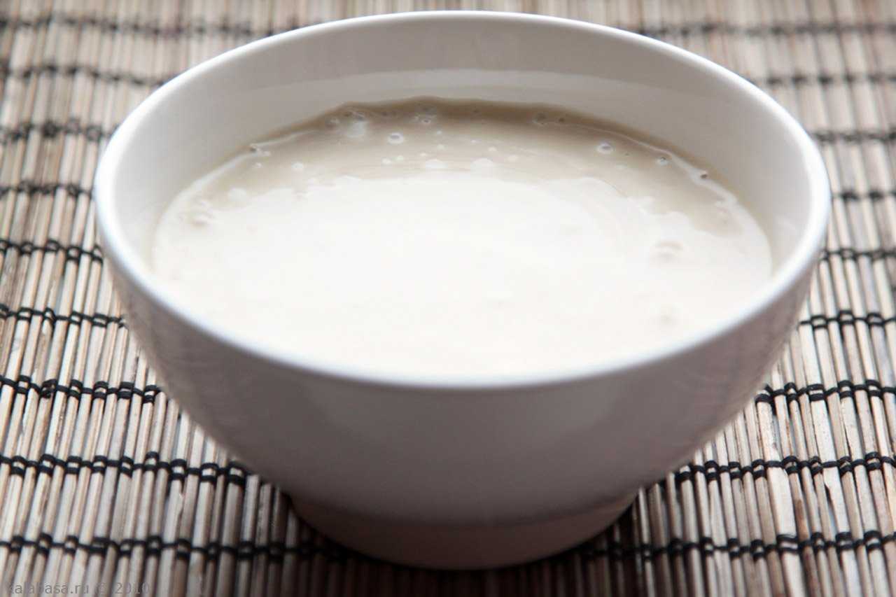- Тонкой струйкой влить стакан тёплого молока при непрерывном помешивании.