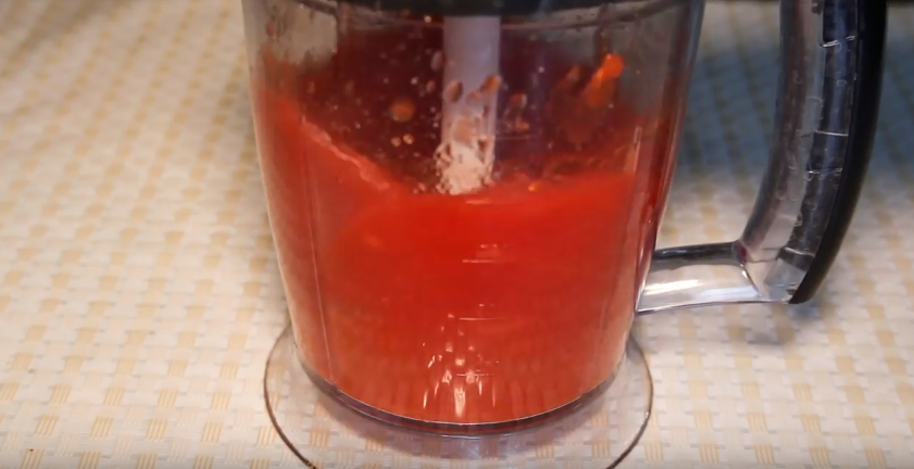 - С помидоров обязательно снимается кожица. Свежие плоды для этого предварительно ошпаривают. Затем измельчают ножом.