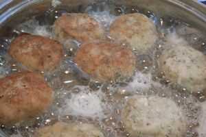 Шаг 6: жарим рыбно-картофельные котлеты.
