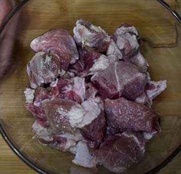 Таким образом, приобретенную свинину необходимо хорошо помыть в чуть прохладной воде, удалить с нее все несъедобные элементы в виде различных пленок и жилок, а затем порезать на небольшие порционные кусочки.