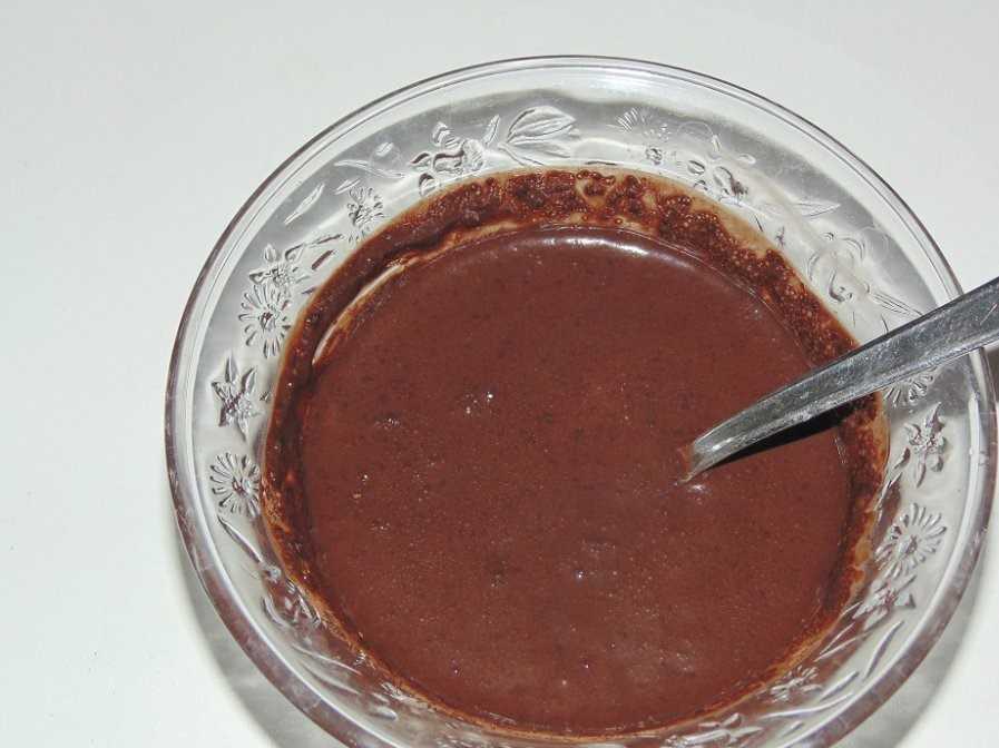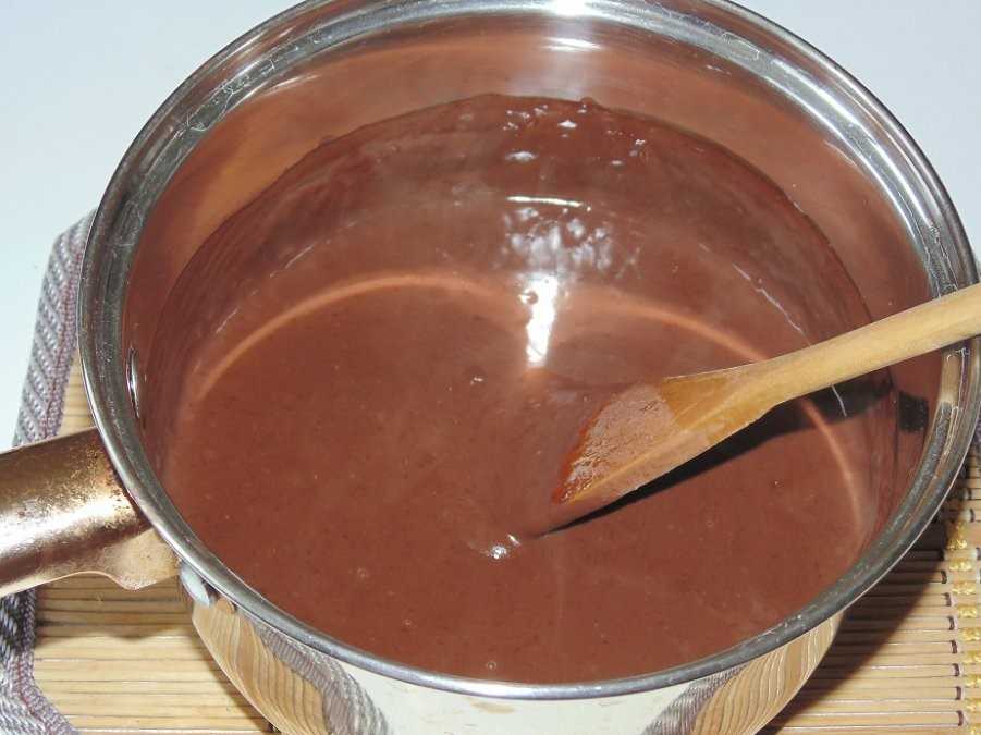 Огонь сделать минимальным, после чего тонкой струйкой влить крахмал, разбавленный нужным количеством воды. Не забывайте помешивать, продолжительность варки составляет не более двух минут. Кастрюлю с шоколадной массой необходимо снять с плиты и слегка охладить, аромат просто непередаваемый!