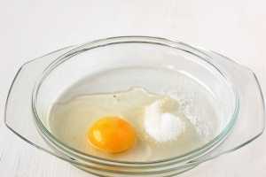 Соединить яйцо с сахаром и ванильным сахаром. Растереть.