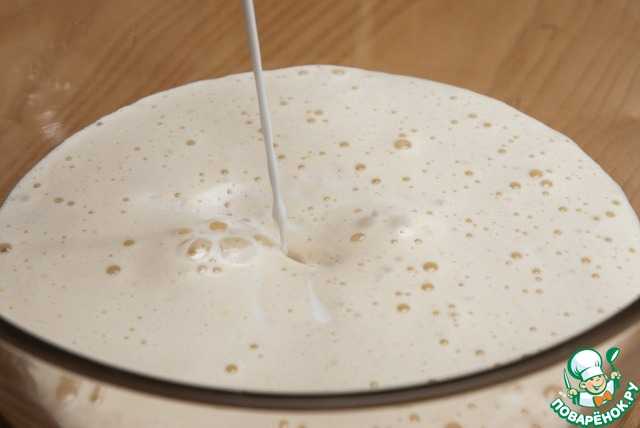 Через несколько секунд на поверхности теста образуются пузырьки.
