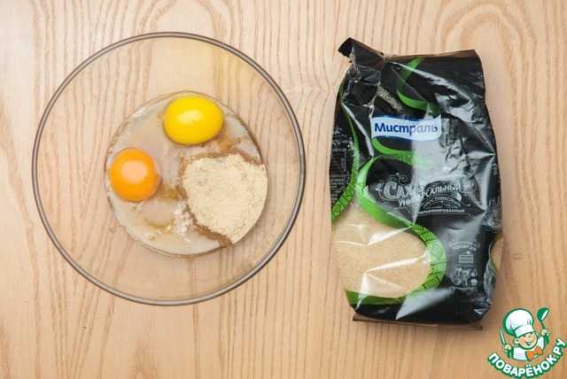 Яйца соединяем с сахаром и ванильным экстрактом.