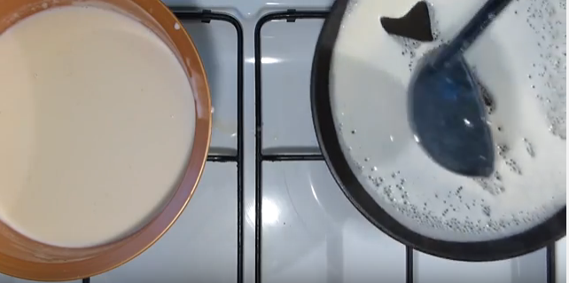 - Молоко налейте в отдельную кастрюльку и немного подогрейте. Для данного рецепта молоко должно быть теплым.
