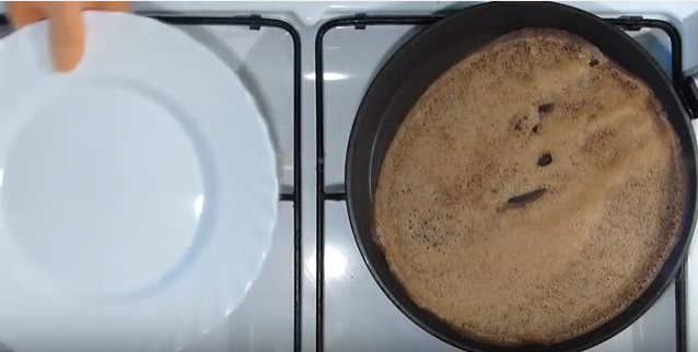 - Затем огонь несколько уменьшите (на очень маленьком огне блинчики станут твердые) и начинайте выпекать блинчики.