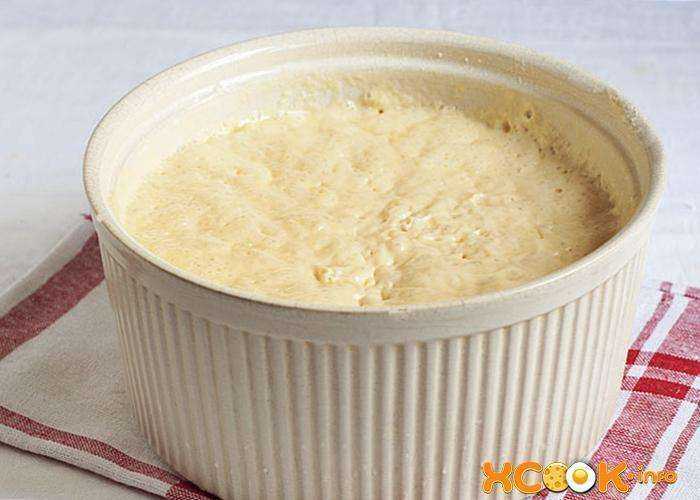 - Теперь нужно дать тесту подойти. На это может уйти от 2 до 5 часов в зависимости от температуры молока и окружающего воздуха. Разумеется, этот процесс в определенной мере можно форсировать, придвинув кастрюлю с тестом к горячей батарее или поставив в тазик с очень теплой водой.