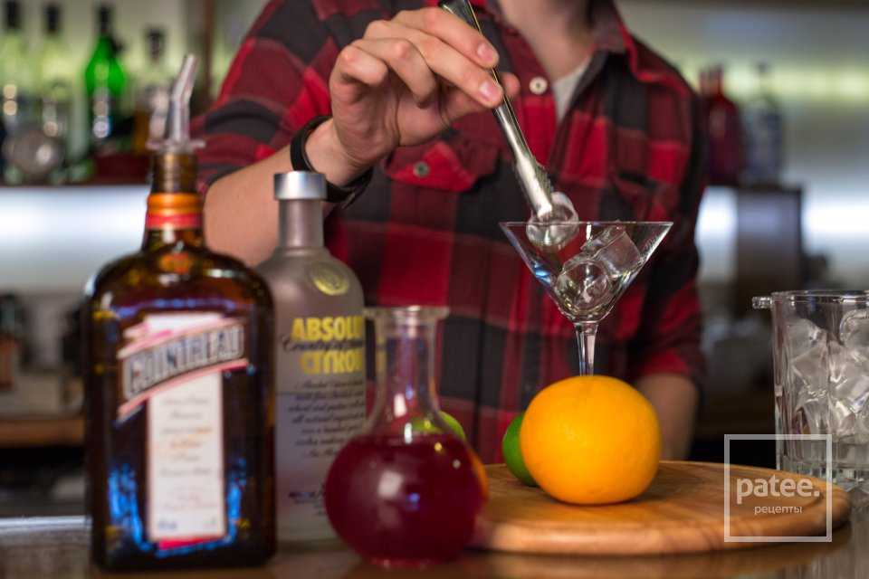 Остальные ингредиенты добавляют в коктейль космополитен по рецепту.