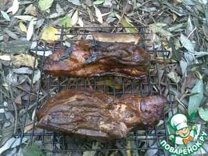 Очень сытное мясо, один кусок «умяли» на природе, а второй утащили домой. Сервируем на своё усмотрение. Все оказалось очень просто и очень вкусно!