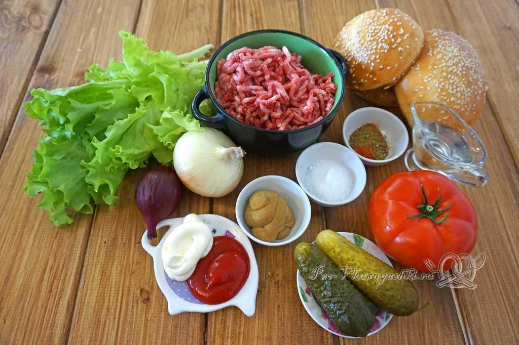 Ингредиенты для «Гамбургер с говяжьей котлетой»: