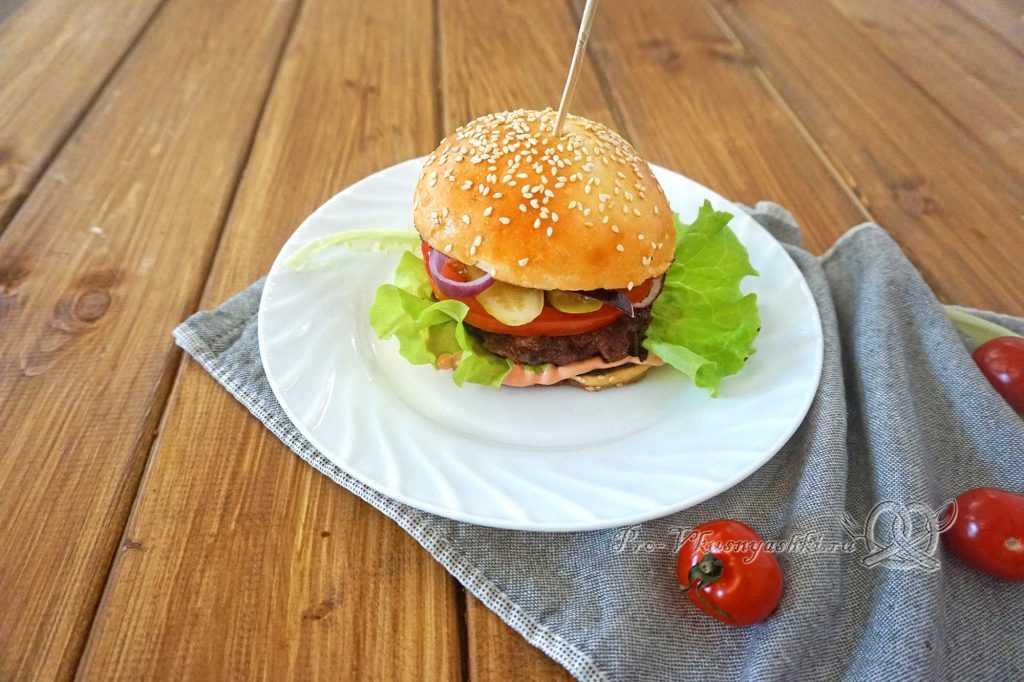 Гамбургер заслуженно считается одним из наиболее популярных блюд в кафе быстрого питания. Классический американский бургер состоит из пышной булочки, порции овощей и вкусной котлеты. Его можно использовать в качестве перекуса в обеденный перерыв, взять с собой в дорогу или на загородную прогулку. Секрет успеха гамбургера заключается в сочной котлете, приготовленной по определенным правилам. Все остальные компоненты придают бутерброду индивидуальные вкусовые качества и пикантность.