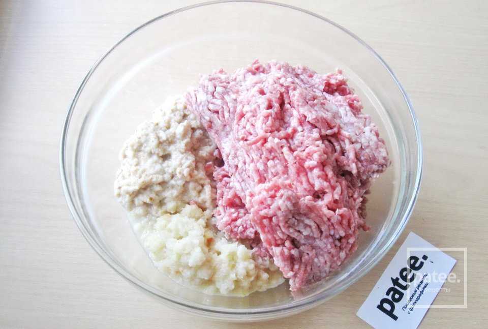 - Приступаем к готовке котлетной массы. Моем мясо, удаляем жилки, промакиваем полотенцем, чтобы убрать влагу, разрезаем на небольшие куски, перекручиваем вместе с луком. Если совсем нет времени, можно взять готовый фарш, но при одном условии. Желательно, чтобы в составе было несколько сортов. С таким мясом котлетки всегда выходят вкуснее.
