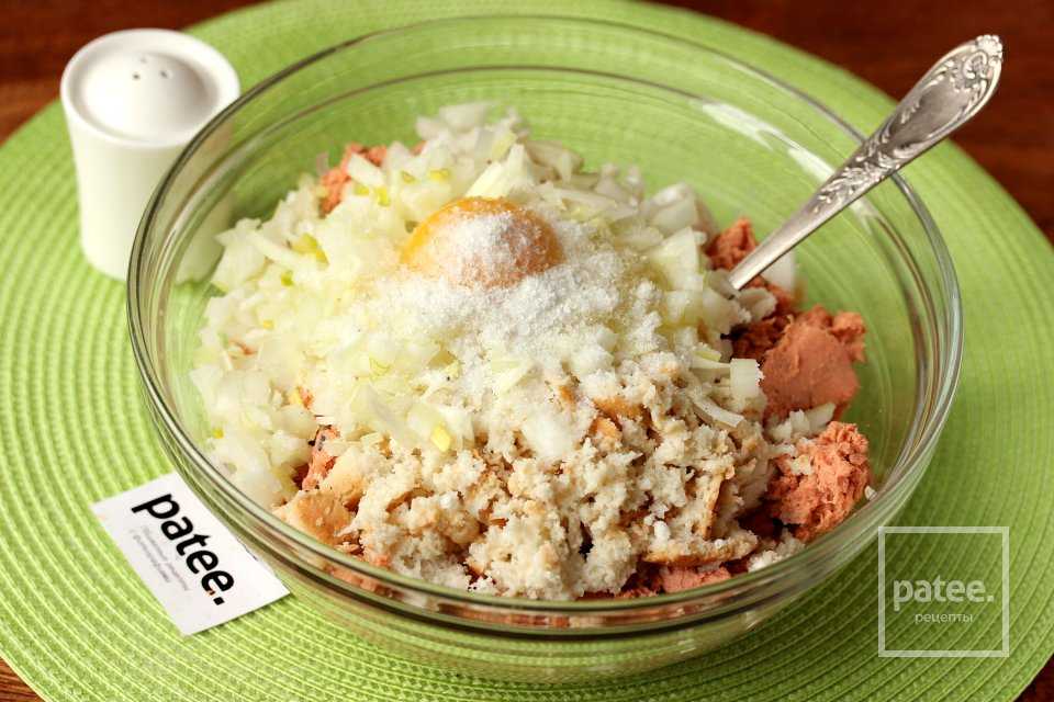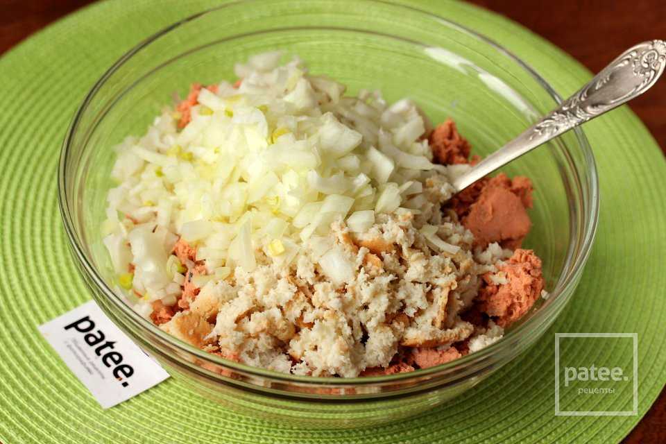 Приготовленные этим способом рыбные изделия должны быть очень мягкими и пышными благодаря разрыхлителю и большому количеству лука, который нужно превратить в кашицу.