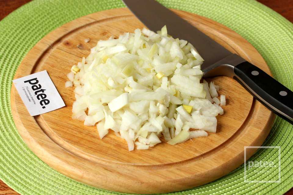 4. Мелко нарезаем или измельчаем в блендере лук.