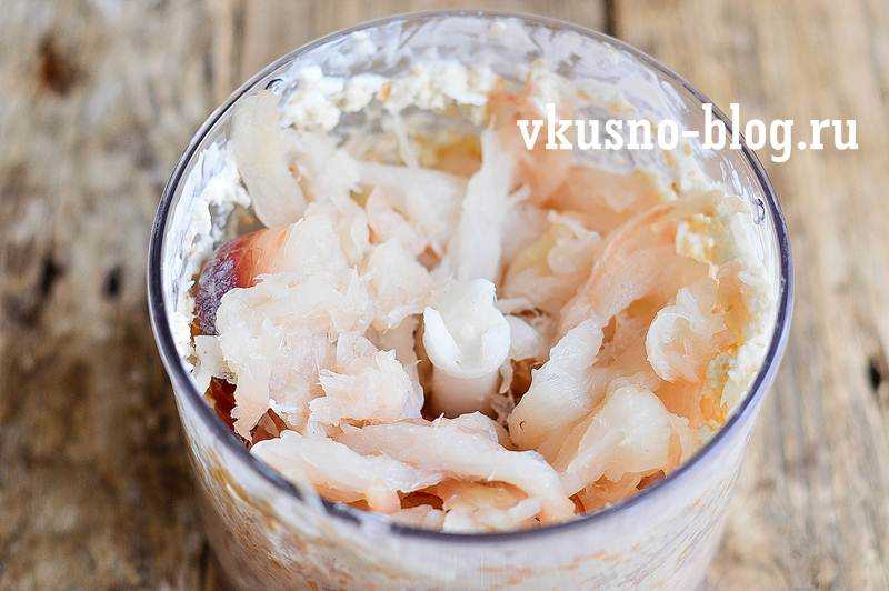 - Филе минтая нужно пропустить через мясорубку вместе со свиным салом.