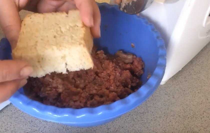- Хлеб вымачивается в молоке, и оставляется для размокания на пару мин.