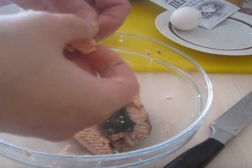 - В рыбу вбить яйца, добавить соль, перец, перемешать.