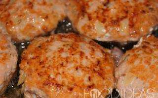 Формируем руками котлеты и обжариваем. Затем складываем котлеты в кастрюлю, добавляем воды (примерно стакан) и тушим после закипания 10–15 минут.