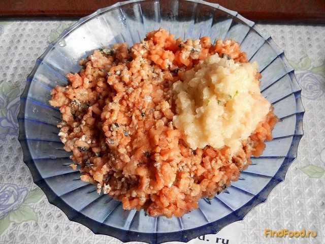 - Сквозь мясорубку пропускается рыба с чесноком, луком и отжатой белой булкой.