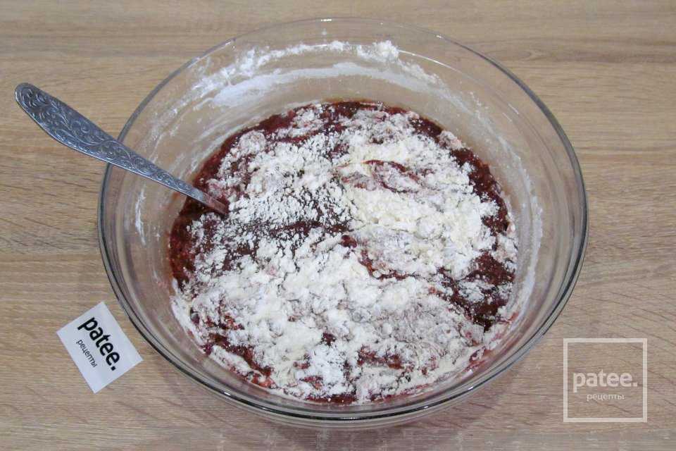 Вымешиваем однородную массу. Муки может понадобится чуть меньше или чуть больше, чем указано в рецепте. Честь муки можно заменить панировочными сухарями, если фарш будет слишком жидким.