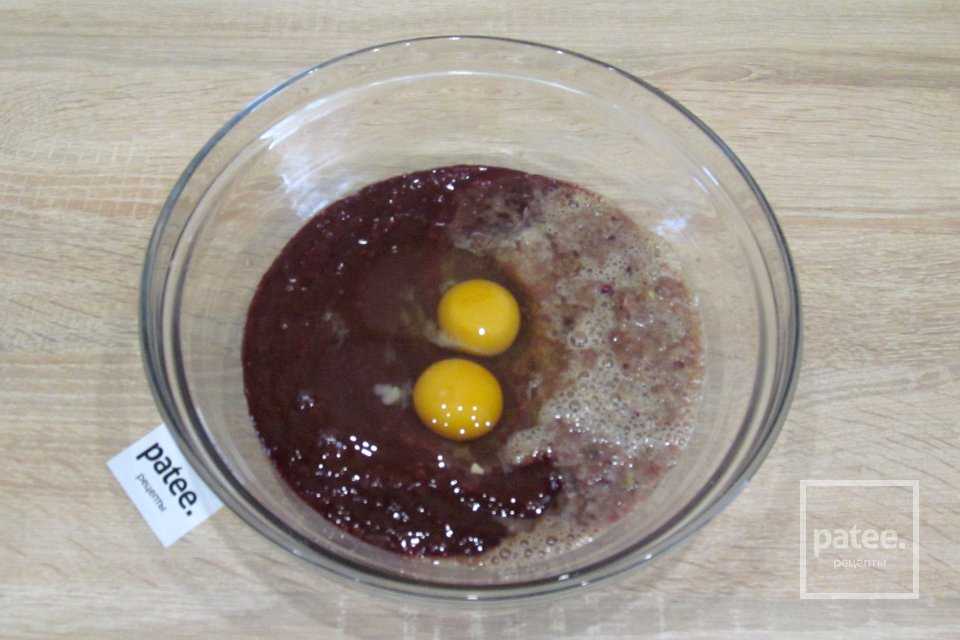 - В фарш добавить яйца, муку. Посолить и поперчить по вкусу. По консистенции фарш не будет густым, скорее, он будет напоминать средней жирности сметану.
