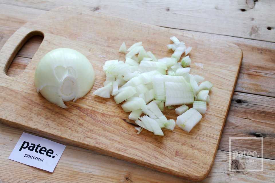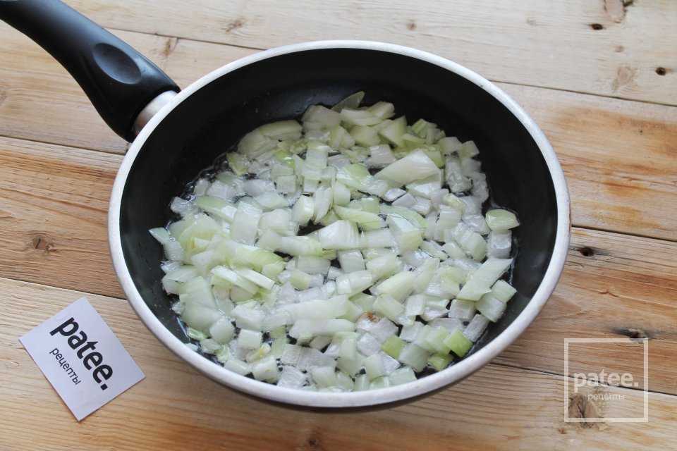 Обжариваем на подсолнечном масле до золотистости репчатый лук.