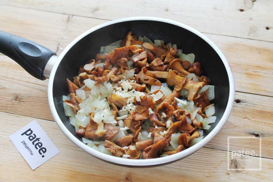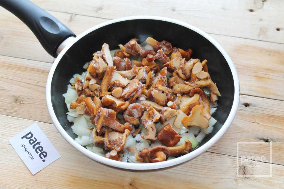 Прокрутите также обжаренные с луком лисички. Фарш хорошо перемешайте, посолите.
