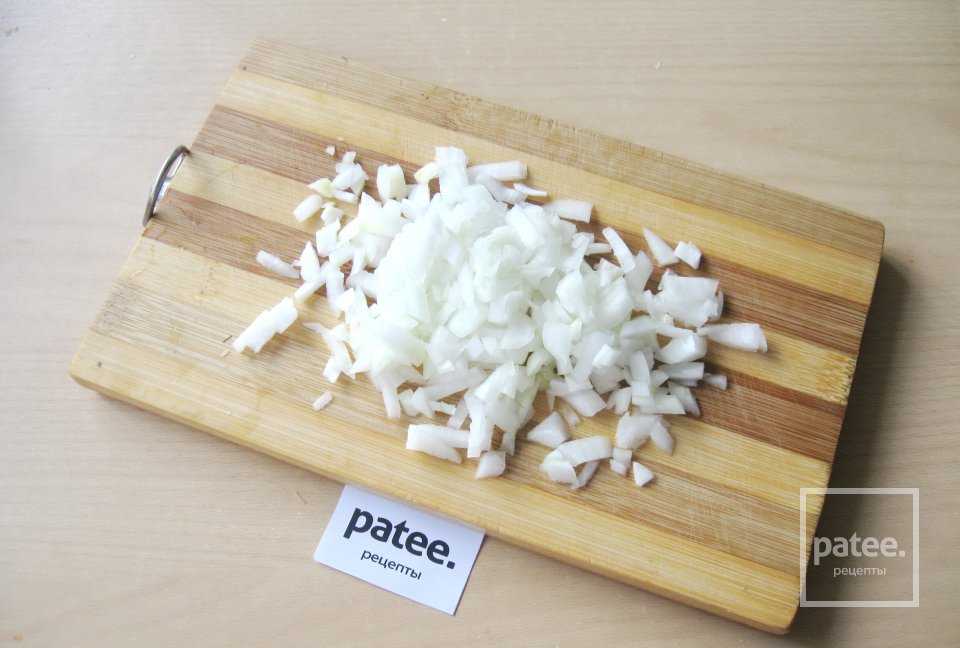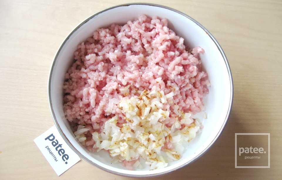 - В мясо добавить перекрученный лук и 1-2 чесночных зубчиков.